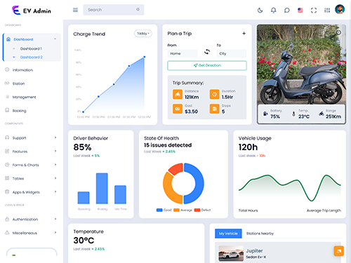 Your search for the Admin Dashboard Template ends here. EV Admin should be your first choice as it adds a lot of value to your amazing project by providing elegant screens through list of options and features.